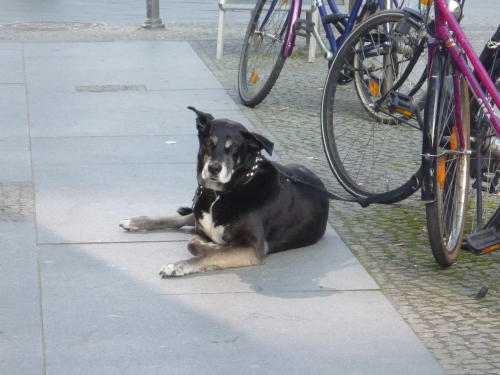 写真はドイツ旅行中にホテルの前で出会ったわんこ。