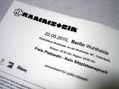 PDF文書の形のあなたのラムシュタインチケットを同封しています