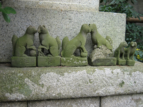 旅先の小さなお稲荷さんでみかけた狐たち。